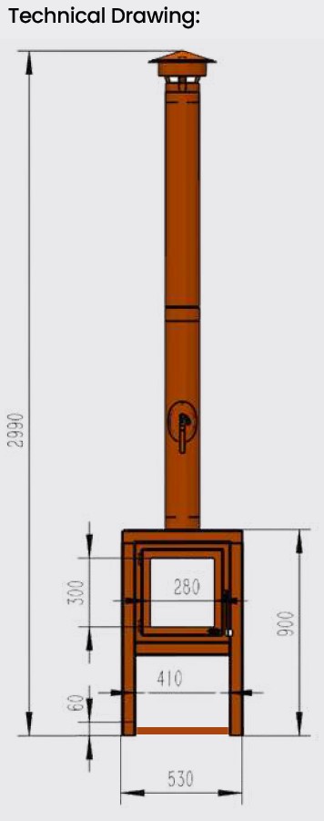 Incl. stove, log box, 2 x flues with damper & cowl